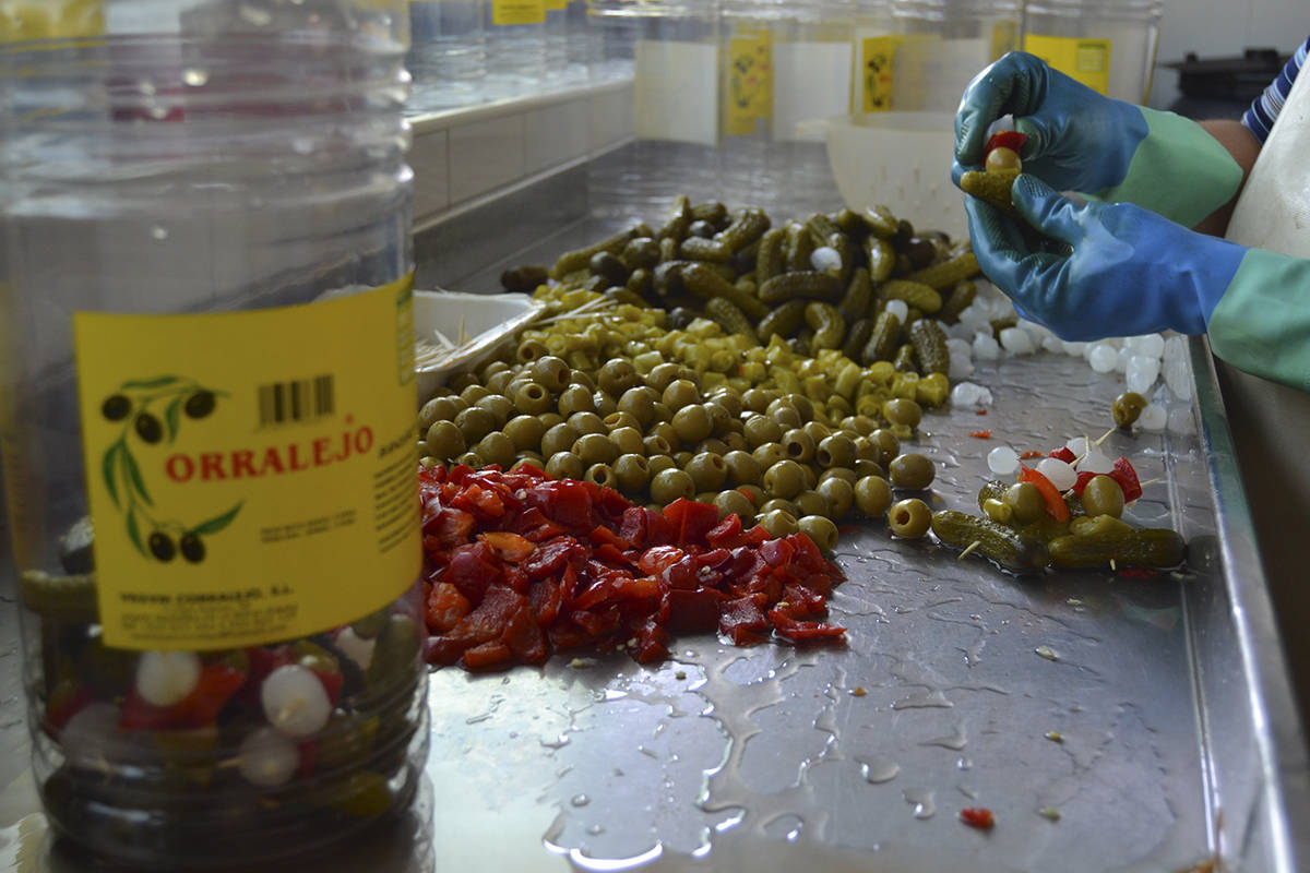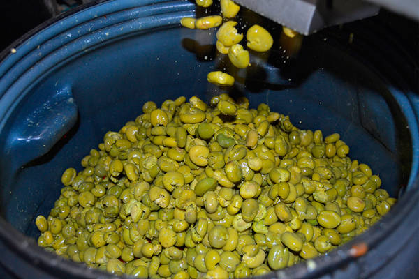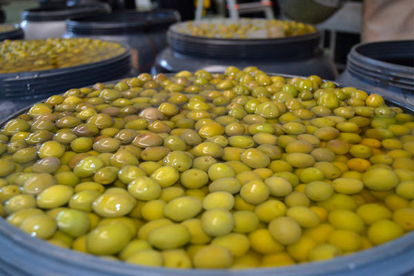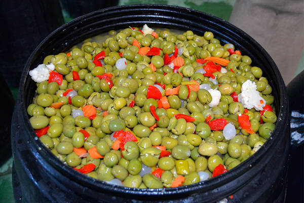 1. Una vez clasificadas las aceitunas, las almacenamos en salmuera.