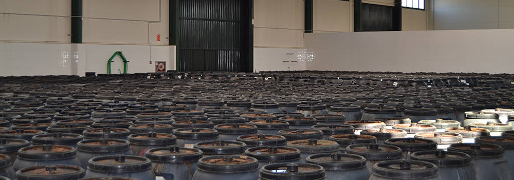 En estas bombonas se almacena parte de la aceituna que se irá envasando a lo largo de la campaña.